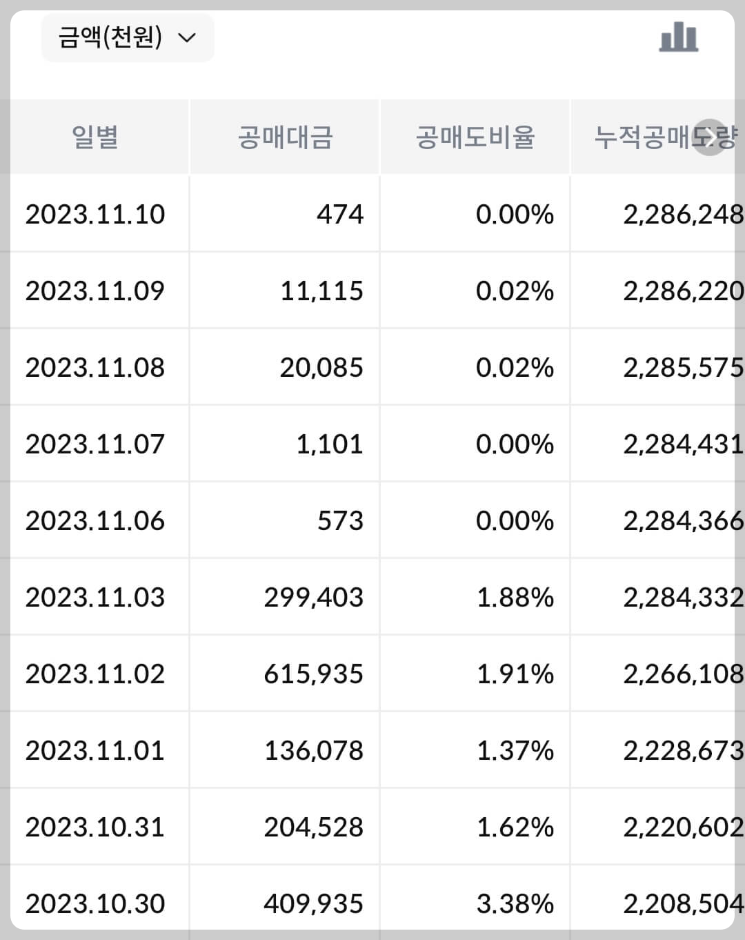 2) 공매도 누적 수급