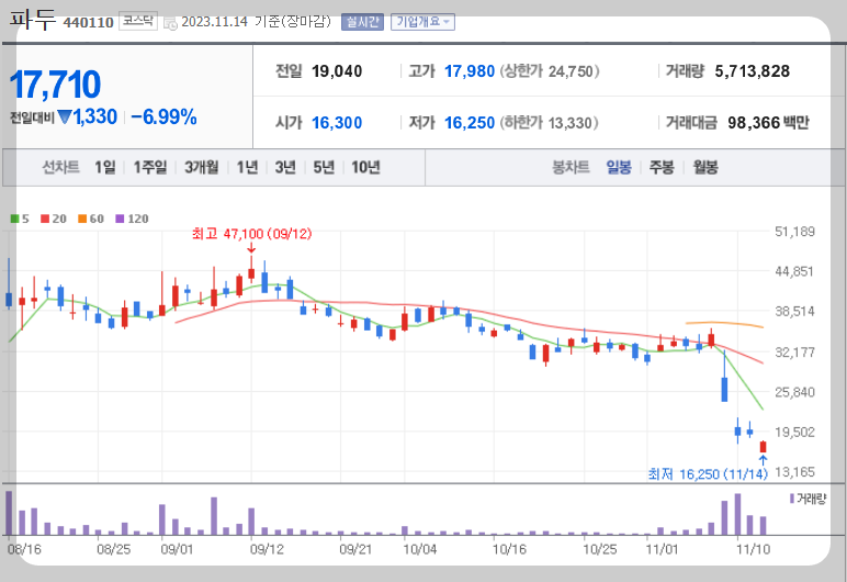 기업의 실적은 충분히 외부 변수에 의해 흔들릴 수 있습니다. 파두와 같은 스타트업의 경우 믹스효과가 충분하지 않고 매출처가 다각화되어 있지 않은 경우가 대부분이어서 외부 변수에 더욱 취약할 수밖에 없습니다. 하지만 진짜 심각한 문제는 파두가 금년도 8월에 상장한 기업이라는 겁니다.