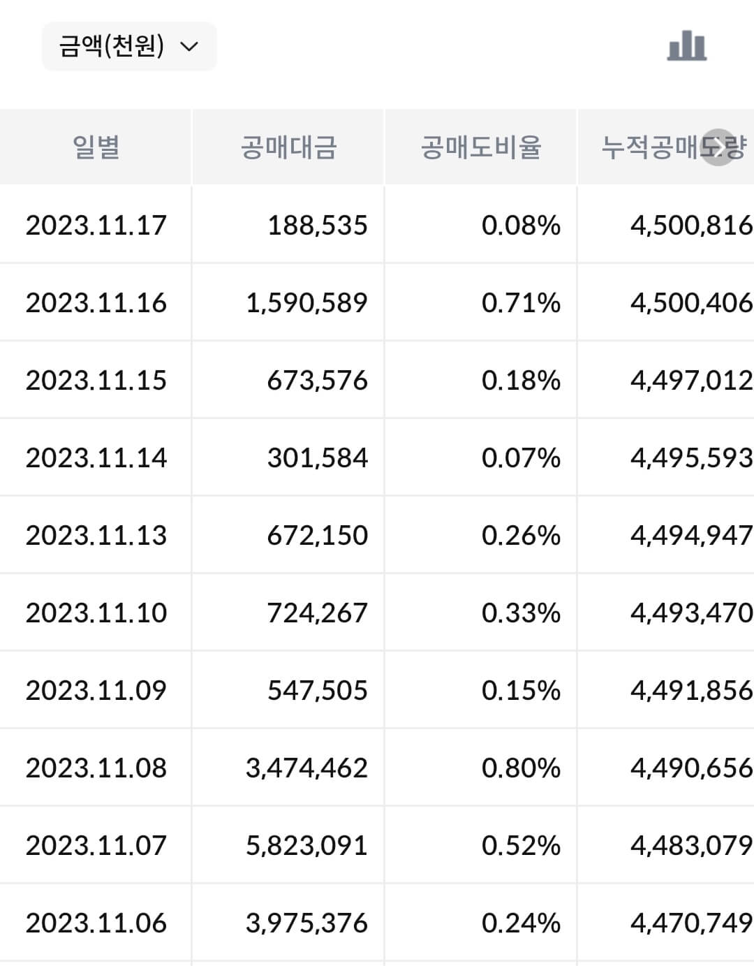- 누적 공매도 금액은 3조 원으로 추산되며 이는 POSCO홀딩스 시총 40조 대비 7.5%에 해당