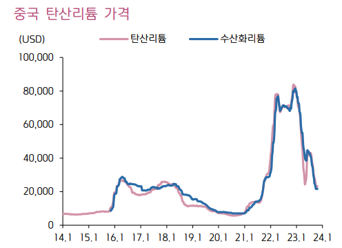 1) 30,000$로 예상했던 리튬 가격 저점이 20,000$까지 하락한 상황