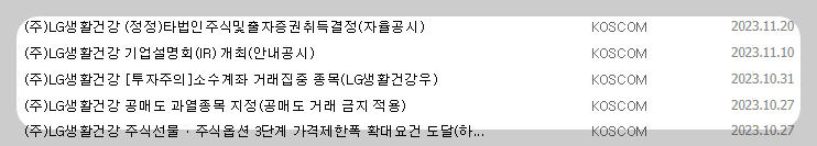 1) 종목명 : LG생활건강