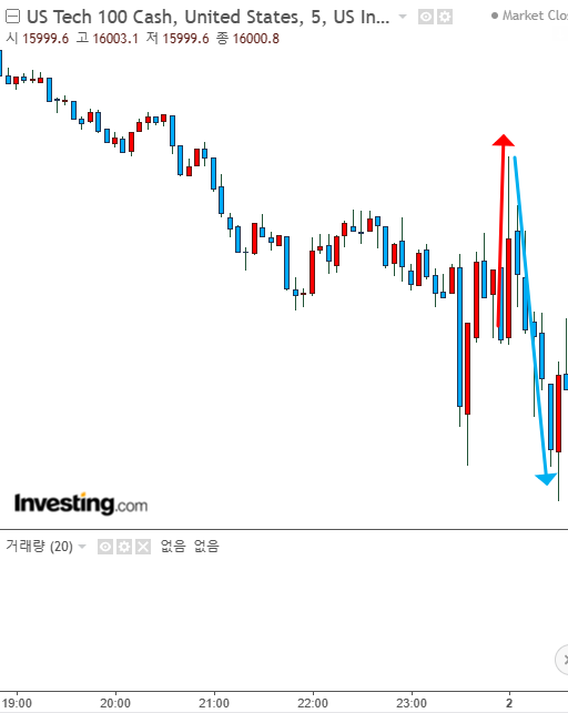 시장은 파월의 위 발언을 듣고 순간적으로 공포감을 강하게 드러냈습니다만 파월은 이내 발톱을 숨기고 비둘기가 돼버렸습니다.