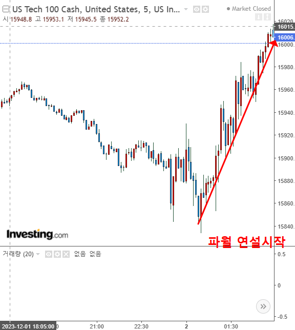 파월의 위 발언은 현재 금리 수준의 긴축정책이 충분히 효과를 보여주고 있어 추가적인 고통 없이 우리의 목표를 달성할 수 있다는 자신감을 드러낸 것이기에 결국 금리동결 시그널을 시장에게 보낸 것입니다. 시장은 가장 매서운 매파로 분류되는 파월의 발언에 환호하며 추세를 완전히 바꿔버립니다.