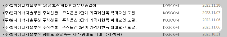 대한민국 코스피 시장에 상장된 LG에너지솔루션의 재무, 차트, 수급을 분석한 후 공시사항을 점검하고 이를 바탕으로 향후 주가 전망 및 목표 주가에 대해 알아보겠습니다. 세밀한 분석을 위해 다른 짜깁기 글에 비해 글과 숫자가 많지만, 읽는 것만으로도 여러분의 시간과 돈을 아낄 수 있습니다. 반드시 종목 매수 전 LIKEBEE를 검색 또는 즐겨찾기 등록해 분석자료를 확인해 주세요.