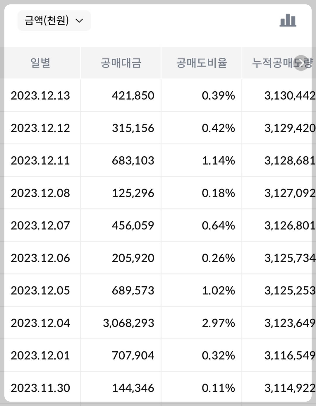 - 공매도 금지 기간이므로 따로 집계하지 않겠습니다.