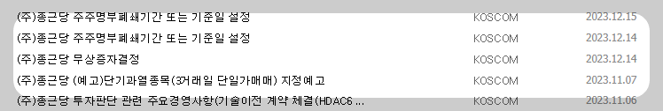 대한민국 코스피 시장에 상장된 종근당의 재무, 차트, 수급을 분석한 후 공시사항을 점검하고 이를 바탕으로 향후 주가 전망 및 목표 주가에 대해 알아보겠습니다. 세밀한 분석을 위해 다른 짜깁기 글에 비해 글과 숫자가 많지만, 읽는 것만으로도 여러분의 시간과 돈을 아낄 수 있습니다. 반드시 종목 매수 전 LIKEBEE를 검색 또는 즐겨찾기 등록해 분석자료를 확인해 주세요.
