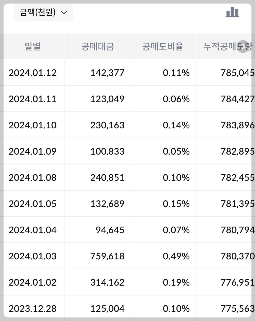 - 공매도 금지 기간으로 생략하도록 하겠습니다.