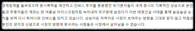 | 투자로 돈을 벌고 싶으면 기준부터 만들어라. (53) | 2023.12.22 |