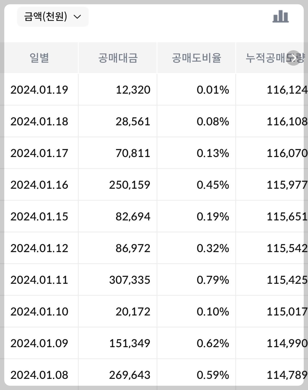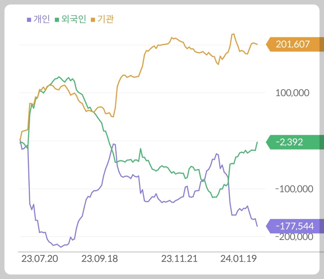 - 개인 1,700억 매도, 외국인 2,000억 매수, 기관 23억 매도