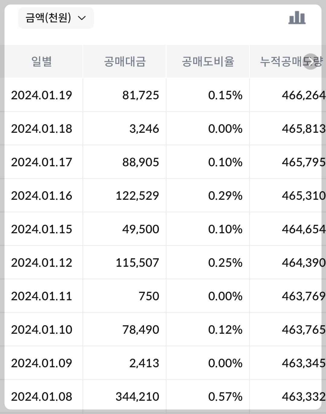 - 개인 388억 매도, 외국인 1,354억 매수, 기관 685억 매도