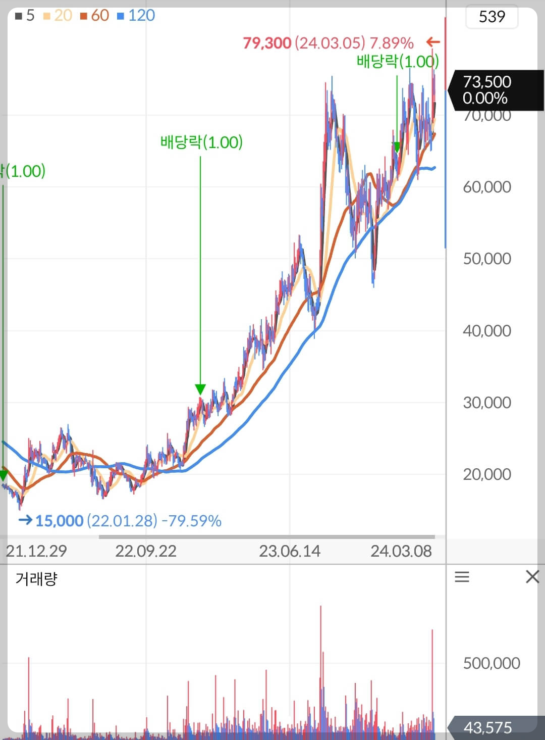 씨앤씨인터내셔널의 2024년 1분기 수주동향을 통해 예측한 연간 영업이익은 약 500억입니다. 해당 실적을 기준으로 한 주가 PER는 약 15배로 크게 부담스러운 밸류는 아닙니다. 예상 영업이익이 증가하거나 향후 성장이 지속된다면 PER는 더욱 낮아질 것이고 주가는 상승동력을 유지할 수 있을 겁니다.