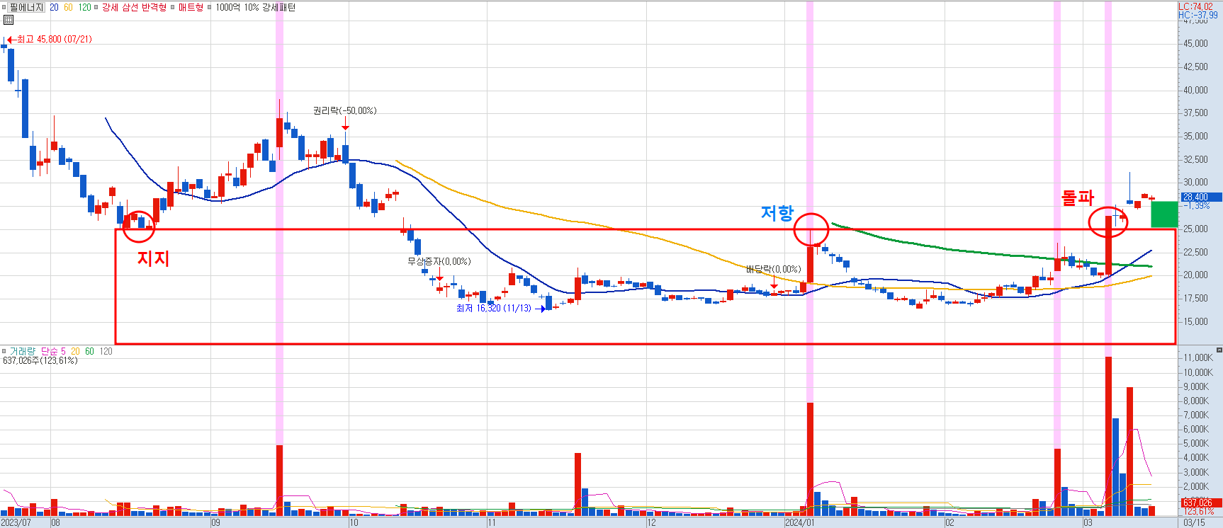 3. 기존 돌파했던 박스권 상단을 지지해준다면 강한 상승이 지속될 것