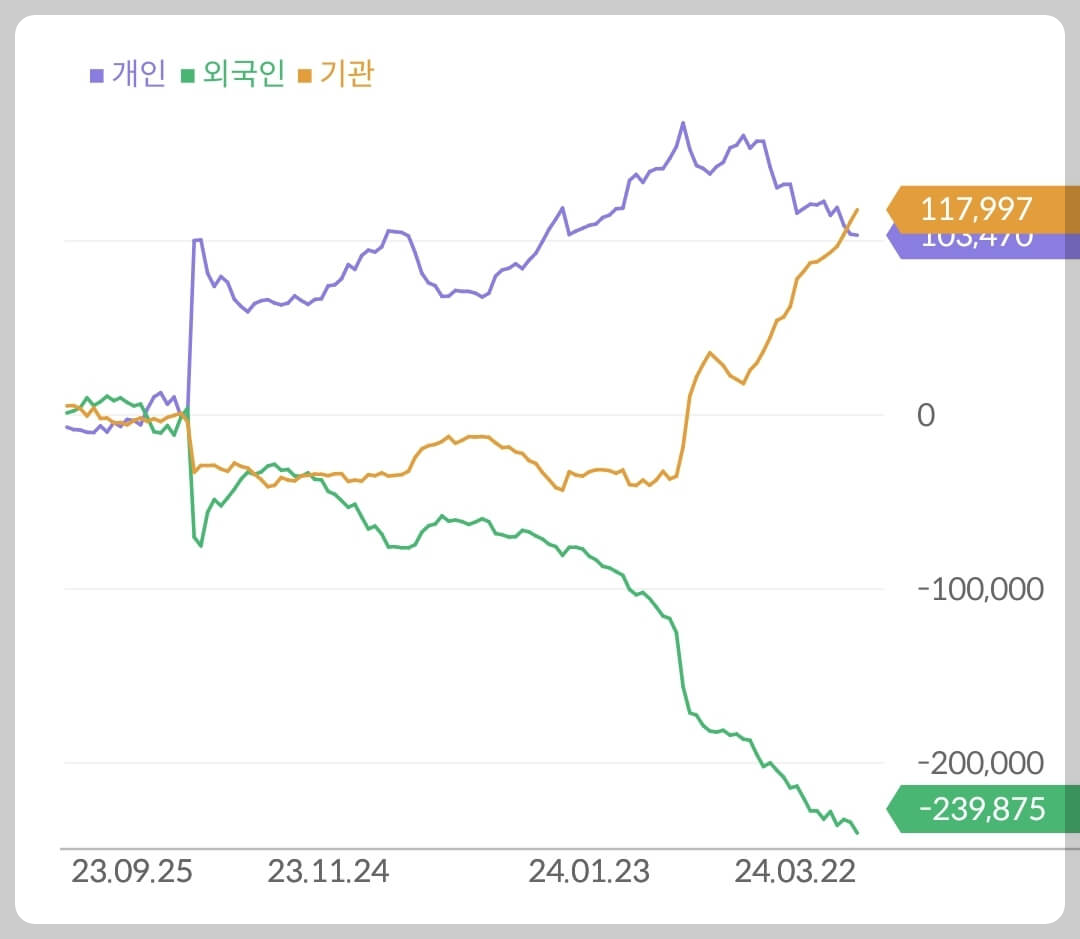 기관 투자자들은 LG생활건강이 현재 최악의 상황이고 더 나 빠질것이 없기에 주가 300,000원은 오히려 할인된 가격이라고 판단한 것으로 보입니다. 저 역시 기관 투자자들의 생각에 동의하고 있으나 투자로 이어지기 위해서는 더 명확한 근거와 확신이 필요하기에 관망하고 있는 상황입니다.