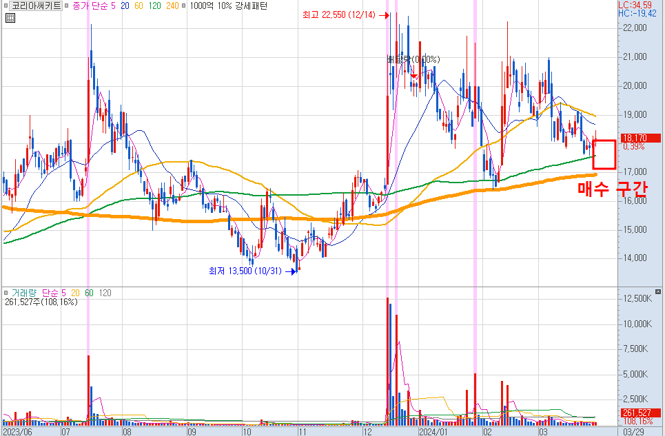- 22,000원을 강한 장대양봉 몸통으로 돌파 후 지지한다면 홀딩, 못한다면 전량 익절