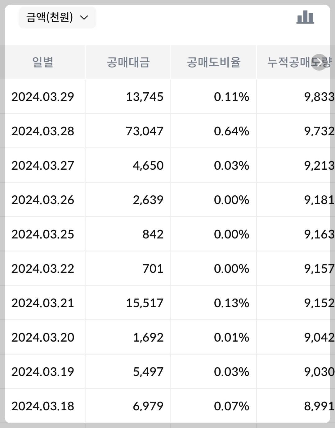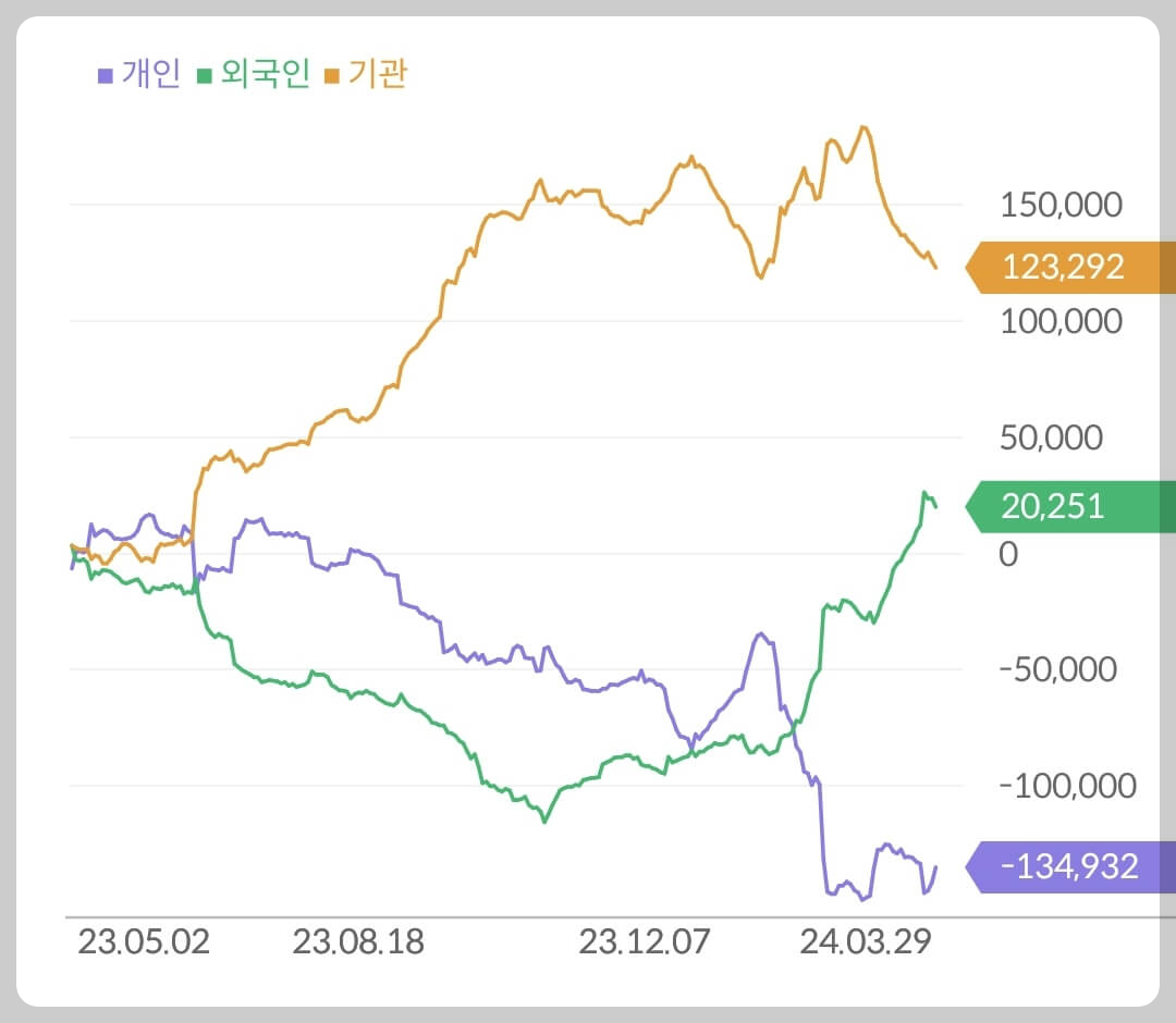 반도체 섹터에서도 피크아웃 이후 최악의 상황을 지날 때 외국인들의 매집이 시작되었습니다. 금호석유에서도 외국인 수급의 추세가 전환되었음이 확인되고 있는데 장기적으로 이어질지 지켜봐야겠지만 지금까진 굉장히 좋은 흐름이 유지되고 있습니다. 따라서 금호석유의 수급 부문 종합등급은 A등급으로 평가하겠습니다.