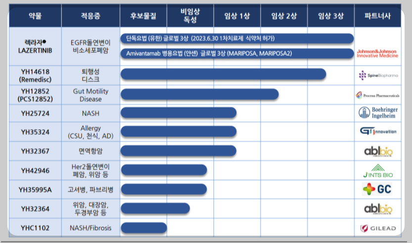 레이저티닙의 전 세계 판권을 보유한 얀센은 2030년 아미반타맙과 레이저티닙의 매출 목표를 연간 6.7조로 발표한 것만 봐도 얀센이 유한양행의 레이저티닙에 거는 기대감과 상업화에 대한 의지를 엿볼 수 있었습니다. 유한양행은 해당 빅파마로부터 유입되는 로열티 비용을 바탕으로 추가 파이프라인의 R&D를 가속화하며 성장의 선순환을 이뤄낼 것으로 기대하고 있습니다.