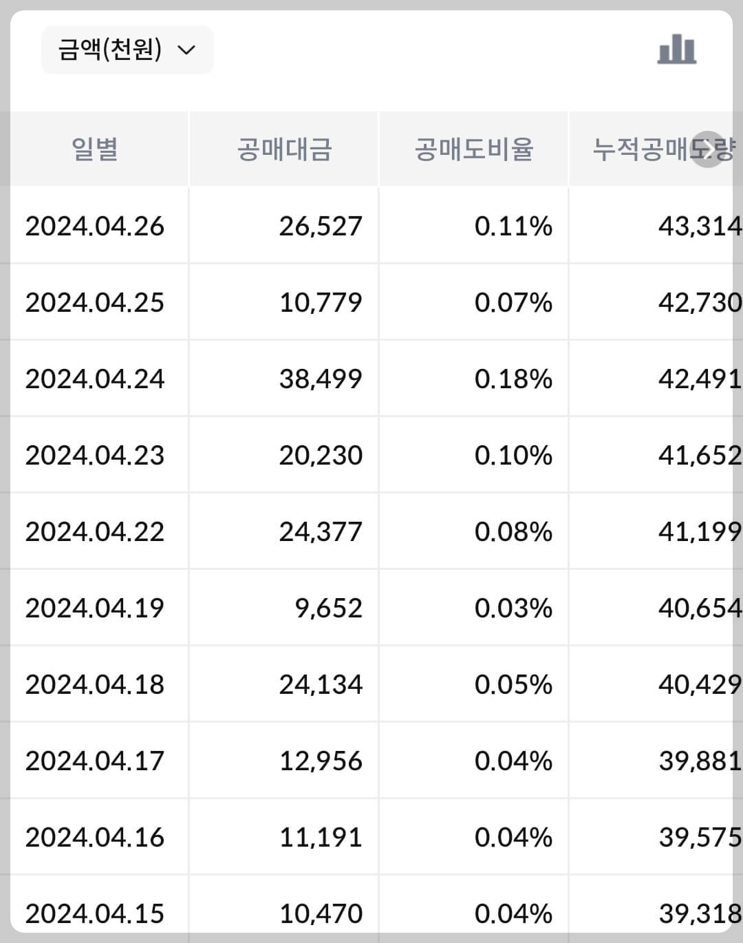 포스코인터내셔널이 도저히 상식적으로 용납할 수 없는 구간까지 주가가 상승했을 당시 하루 유입되는 공매도 규모는 무려 1,000억입니다. 공매도 세력들은 다시 없을 절호의 기회를 놓치지 않고 비상식적인 주가에 공매도를 퍼부었으나 23년 11월부터 공매도가 금지되며 하락 가속도가 약해졌습니다. 솔직히 당시 포스코인터내셔널의 주가는 상승각도, 모멘텀, 근거 어떤 요소를 보더라도 주가를 유지할 가능성은 거의 0%에 근접할겁니다.
