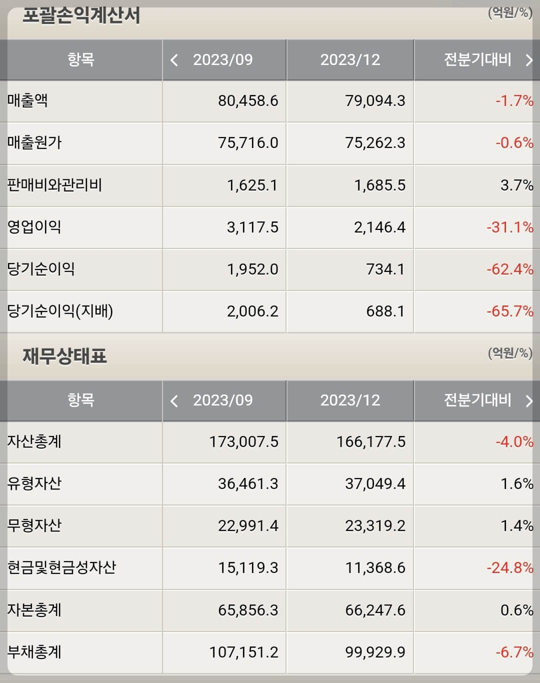 1) 기대감이 컸던 2차 전지 소재 사업 부진 심각