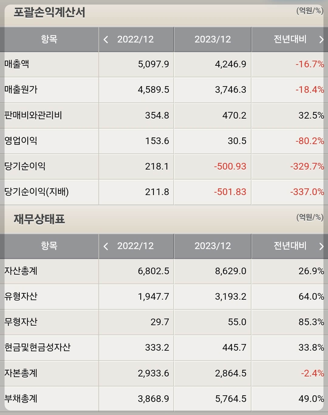그런데 지금 리튬염 가격이 폭락해 생산 원가가 크게 하락해 수익성이 개선되었을 것 같지만 수요 공백으로 매출이 크게 하락했고 매출 하락을 상쇄하기 위해서 결국 가격을 인하해서 시장에 공급해야 하기 때문에 수익성이 오히려 훼손되는 결과를 보이고 있습니다. 2023년 엔켐의 영업이익률은 0.7%입니다.