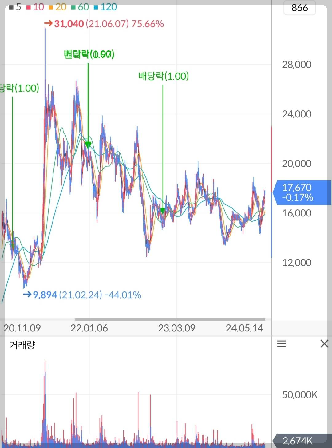 특정 정당의 총선압승으로 두산에너빌리티의 주가는 단기간에 크게 하락했었습니다. 이런 말도 안되는 일회성 이벤트로 주가가 급락할 경우에는 매수기회가 될 수 있다고 늘 말씀드렸죠. 저 역시 두산에너빌리티 주가 16,000원 아래에서 분할매수로 물량을 받았고10% 익절 구간부터 조금씩 정리했습니다.