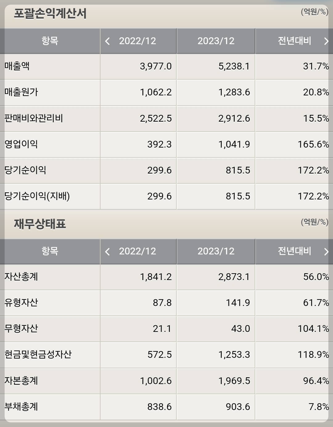 완벽하게 업종이 일치하다고 볼 순 없지만 아무튼 동일 섹터라고 볼 수 있는 PEER들의 밸류는 PER 30~40배 사이에서 주가를 형성하고 있다는 것을 확인할 수 있습니다. 그런데 현재 에이피알의 주가도 2023년 실적 기준 PER 약 32배로 PEER들과 비슷한 밸류를 유지하고 있기 때문에 만약 2024년 유의미한 성장을 지속한다면 밸류부담은 더욱 낮아지고 그만큼 주가는 우상향 할 수 밖에 없습니다.