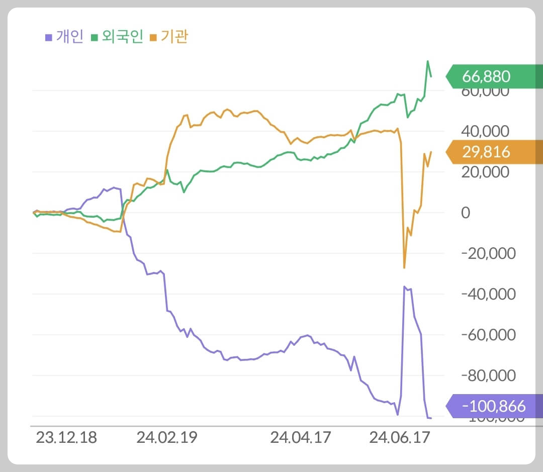 24년도 초부터 외국인들이 한국가스공사의 지분을 꾸준히 확대하는 모습이 포착되었습니다. 그 전까지는 큰 지분변동없이 유지되었다는 점을 보면 조금 특이한데 아무튼 대통령 발표로 주가 급등이 나왔음에도 오히려 더 빠른 속도로 지분을 늘리며 익절물량을 고점에서 받아내고 있습니다.