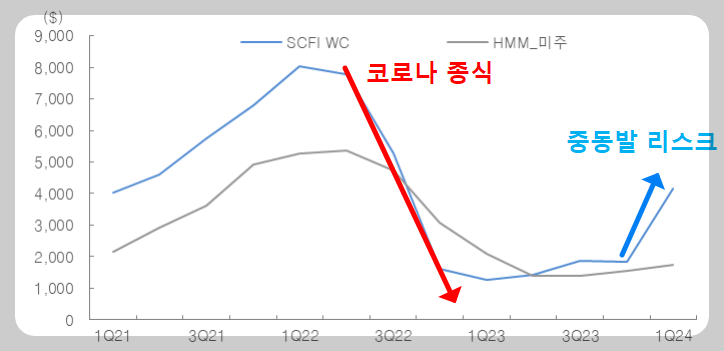 2) 홍해 리스크 해소시 해상운임 하락 가능성