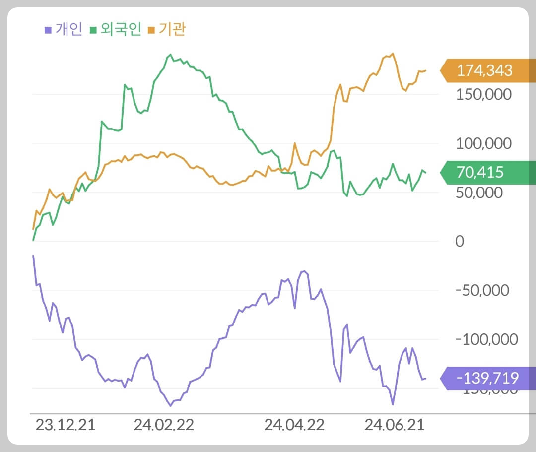 2024년부터 글로벌 해운사들의 영업이익이 증가하자 외국인과 기관의 양매수 포지션이 유지되곤 있지만 현재로서는 큰 수급의 변동없이 매크로 상황을 유심히 지켜보는 듯 합니다. 따라서 HMM의 수급 부문 종합등급은 B등급으로 평가하겠습니다.
