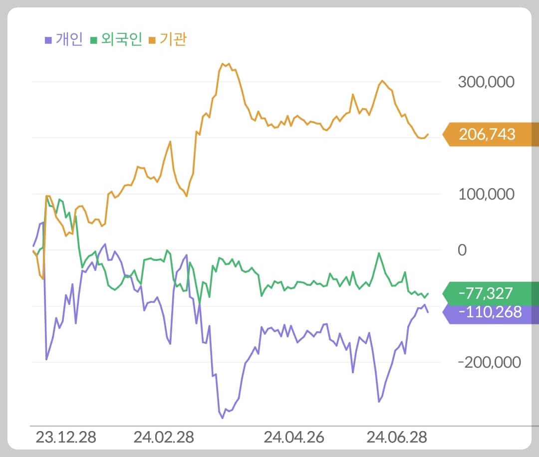 2022~2023년 폭발적으로 수급이 몰리며 2차전지 섹터 전체가 상승했던 시기와 정 반대의 상황입니다. 거래량은 급감했고 시장은 2차전지 섹터에 관심을 주고 있지 않습니다. 매 분기 역성장하는 2차전지 섹터가 다시 구조적 성장기에 진입하기까지는 꽤 오랜 시간이 걸리겠다는 시장 참여자들의 판단이 2차전지 종목들에게 부여했던 높은 주가 프리미엄을 다시 회수하는 결정에 기여하고 있는 것입니다.