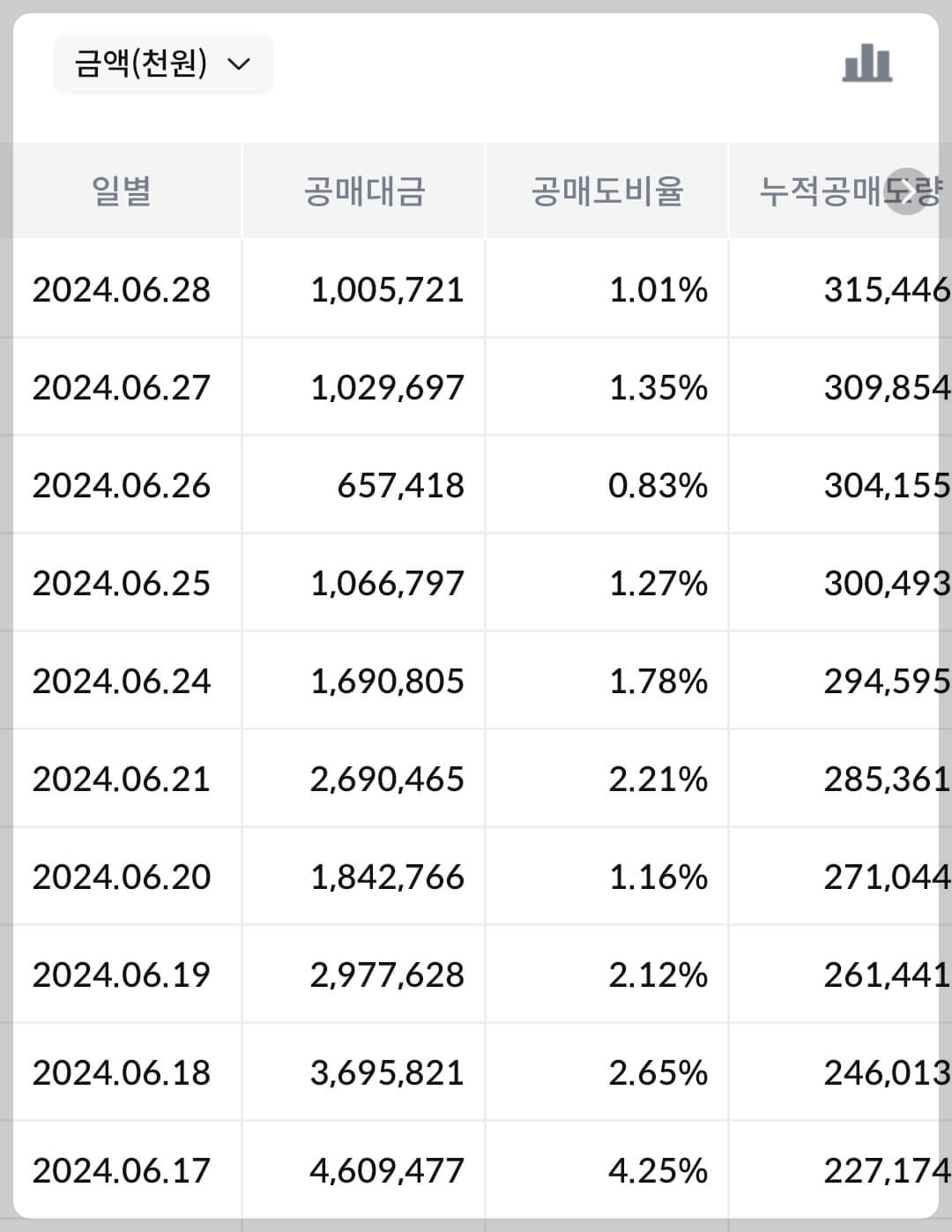 2차전지 섹터는 모멘텀이 없어 종목별로 주가가 각기 따로 움직이는 상황이며, 매크로 영향을 많이 받는 대형주들의 경우에는 대부분 유의미한 수급이 유입되고 있지 않습니다. 공매도 금지기간이라 대부분의 종목들이 누적 공매도 수량이 높지 않은데, 유독 에코프로비엠은 공매도가 가능한 시장 조성자 9개 증권사들의 공매도 규모가 상당합니다. 에코프로비엠의 수급 부문 종합등급은 D등급으로 평가하겠습니다.
