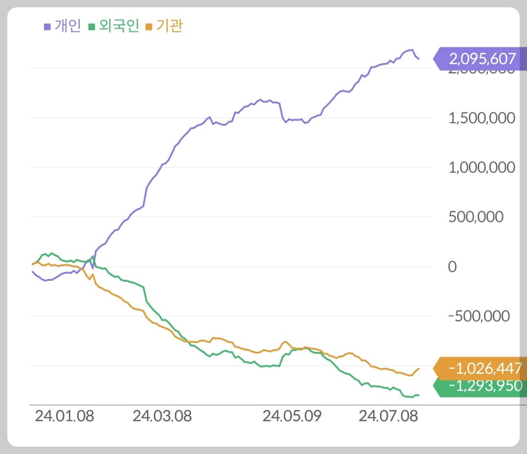 개인 투자자들은 NAVER 같이 실적이 좋은 우량주의 주가가 하락했을 경우 손절보다는 물타기를 선택하는 경우가 압도적으로 많습니다. 물타기는 내 실력이 형편없어도 승률을 압도적으로 높여주는 매매방법이지만 결국 1패로 모든 것을 잃을 수 있는 비합리적인 매매방법입니다. NAVER도 이렇게 물타기를 하다보면 언젠간 본전 이상으로 탈출할 확률이 높다는건 분명 인정할 수 밖에 없습니다.
