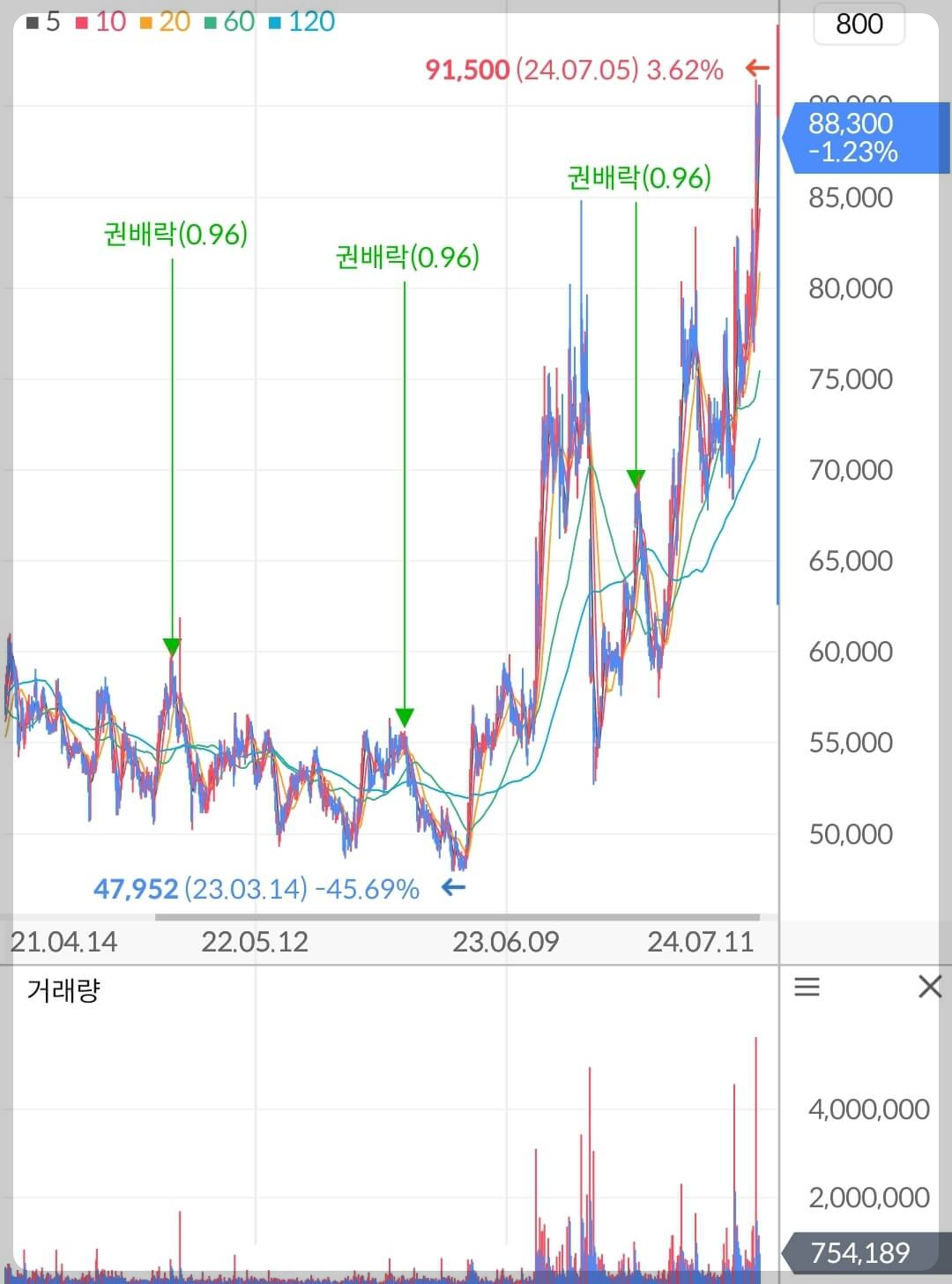우리는 3개월 전 7만6천원에 이미 분할 익절에 성공했고 5만5천원 부근에서 다시 재매수에 성공했습니다. 목표가는 이미 지난 분석에서 공유드렸다시피 이번엔 10만원을 TP로 가져가겠습니다.