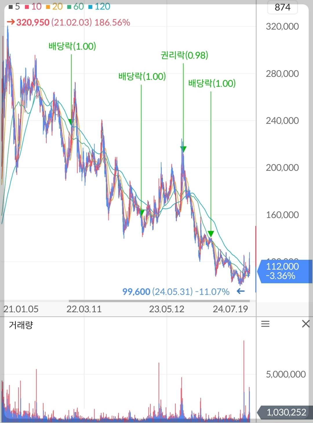 주주들에게 돈 내놓으라고 협박할땐 1주 당 158,900원에 팔더니 주식 매수청구권 가격은 111,943원으로 설정한 기업입니다. SK그룹은 울며 겨자먹기로 유상증자에 참여한 주주들에겐 고마움 따위는 전혀 없는 싸이코패스같은 모습을 보이고 있습니다.