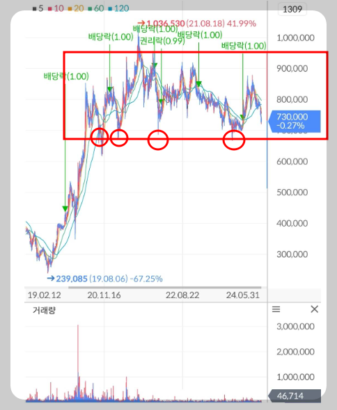 하루에 10~20%를 오가는 바이오 기업이 아니라 누군가에게는 지루하기만 한 종목이겠지만 우리는 도파민이나 탐욕에 잠식당한 것이 아닌 투자 관점으로 접근했기에 주변 유혹에 흔들리실 필요없습니다.