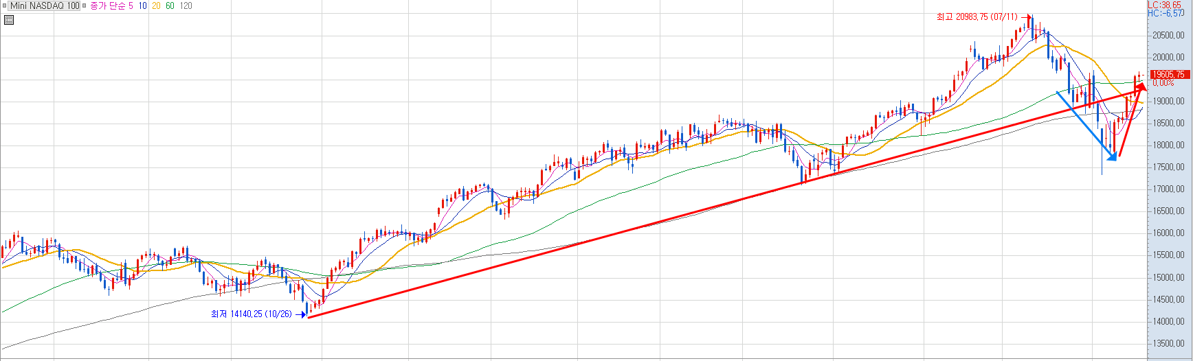 이전 분석에서 나스닥 19,500을 돌파해서 안착해야 추세를 바꾸는 것이라고 말씀드렸는데 이 어려운걸 단 몇 일만에 해내는 미국 증시는 참 대단하다는 생각이 듭니다.
