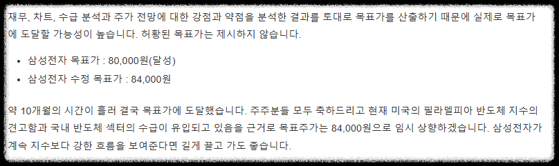 하지만 직전 분석이었던 24년도 8월 삼성전자 주가 81,200원이었을 당시 여러분들께 제시한 삼성전자 목표가는 없었습니다.