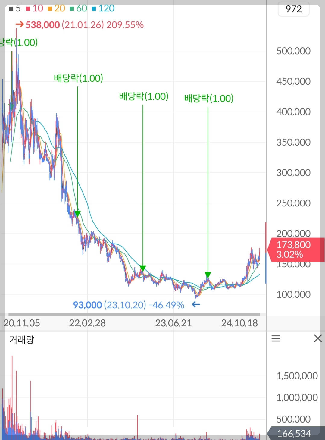 아무튼 녹십자도 역성장하는 2년 이상의 기간동안 주가 10만원 부근에서 작전 휴유증인 시간 조정을 받았고 지친 개인 투자자들의 이탈과 녹십자의 턴어라운드 시그널이 동시에 확인되며 주가도 반등을 시도하고 있습니다.