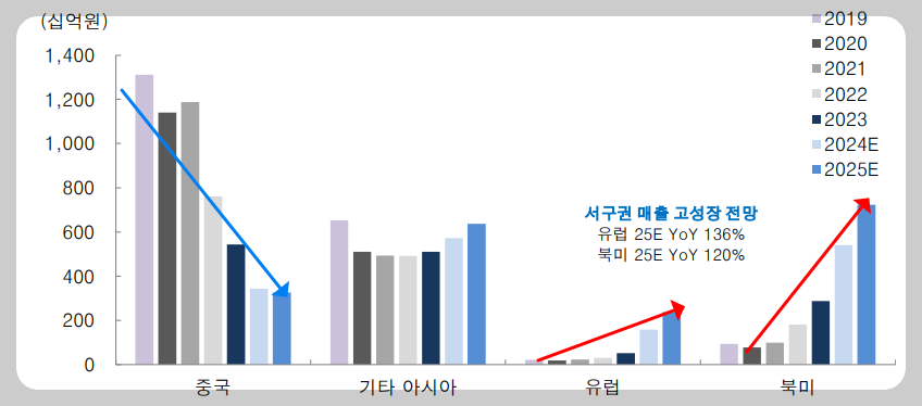 하지만 현재 리밸런싱 초기 구간에서 유의미한 실적 반등을 기록하기는 어렵습니다. 위 도표에서 보시다시피 아모레퍼시픽은 워낙 중국 매출 비중이 과도하게 높은 기업이었기에 리밸런싱을 통해 중국 경쟁력 상실을 상쇄하고 2020년 이전의 이익레벨로 돌아가기 위해서는 상당한 투자가 필요할 것으로 보입니다.