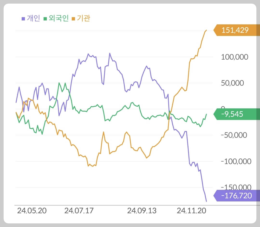 이벤트가 발생하며 주가 변동폭이 커지면 일반적으로 단타 성향의 개인 투자자들이 많이 진입합니다. 그런 단타 성향의 개인 투자자들이 약 2~3개월간 물렸으니 본전 심리가 굉장히 커질 수 밖에 없었을것입니다. 하이브의 주가가 탄력적인 반등이 나오면서 개인 투자자들의 매도 체결 강도가 굉장히 강해진 것을 확인하실 수 있죠. 단타 매물을 다 받아먹고도 상승 각도를 가파르게 유지하고 있다는 것은 강한 추세가 살아있다는 것을 의미합니다.