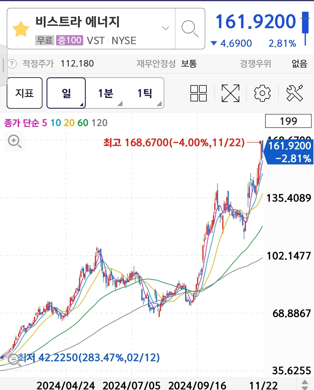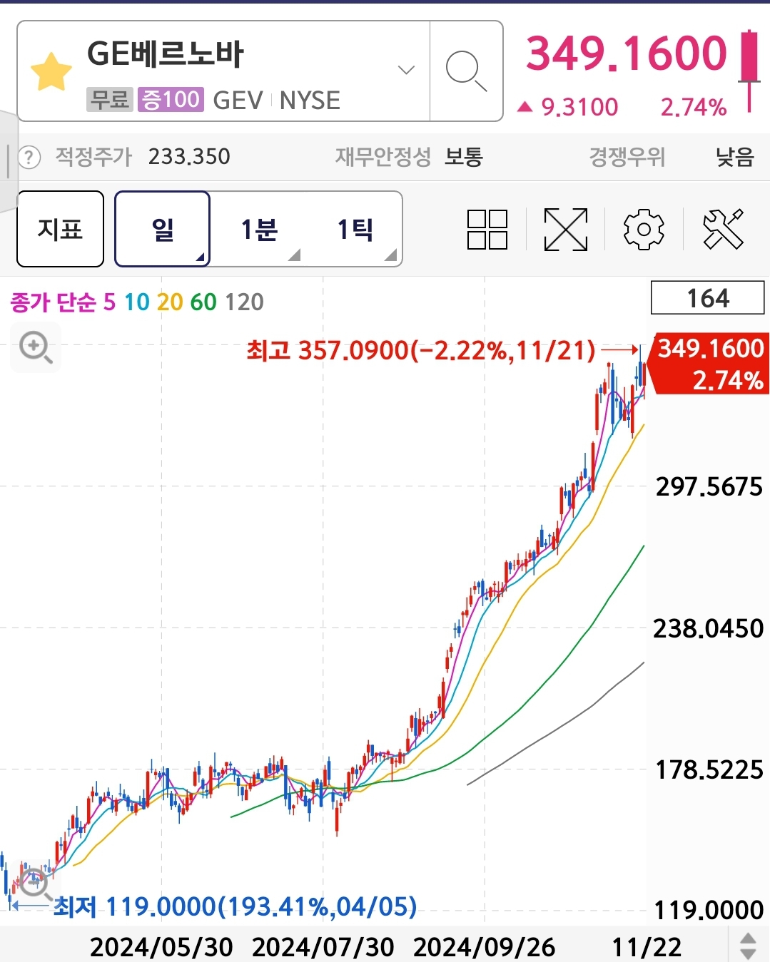 이런 시대와 산업의 변화를 느끼고 전력 섹터 포트폴리오를 구성해 투자하라고 노골적으로 힌트를 드렸었습니다. 위 스샷 중 직접적으로 언급했던 기업은 GE베르노바였죠. 보통 저는 버노바라고 부릅니다. 아래는 제가 구성한 전력섹터 포트폴리오입니다. 이미 스마트머니는 변화를 느끼고 전력섹터로 이동하고 있음이 느껴지시나요?