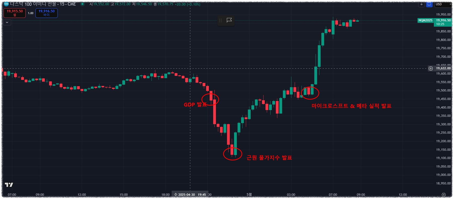 지표발표 직후 하락분을 빠르게 만회하기 시작했고 결국 GDP 발표 하락분은 약 4시간만에 전부 만회하는데 성공했습니다.