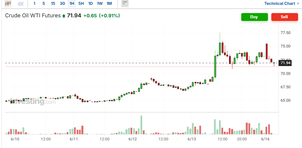 그런데 당장은 시장이 이스라엘과 이란의 전쟁을 어떻게 바라보고 있는지 알 수 있는 지표가 하나 있습니다. 바로 국제유가죠. 이란의 호르무즈 해협은 원유가 세계로 뻗어나가는 길이죠. 대한민국 역시 수입되는 원유의 70% 이상이 이란의 호르무즈 해협을 통과하고 있습니다. 따라서 전쟁이 고조되어 이란의 호르무즈 해협이 봉쇄된다면 국제 유가는 상상이상으로 상승할 수 밖에 없죠.