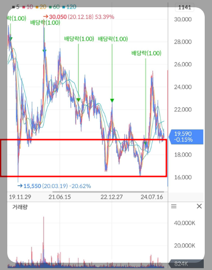그런데 이제 결실을 맺는 구간에 돌입했습니다. 24년 분석에서도 충분히 매수할 수 있는 밸류 구간이고 타깃은 26,000원을 제시해드렸습니다. 지난 분석글에서 첨부드렸었던 한국전력 차트를 보시면 우리 매집 구간이 16,000원 ~ 18,000원이었기에 우리 수익률은 약 48~60% 정도로 추정됩니다.