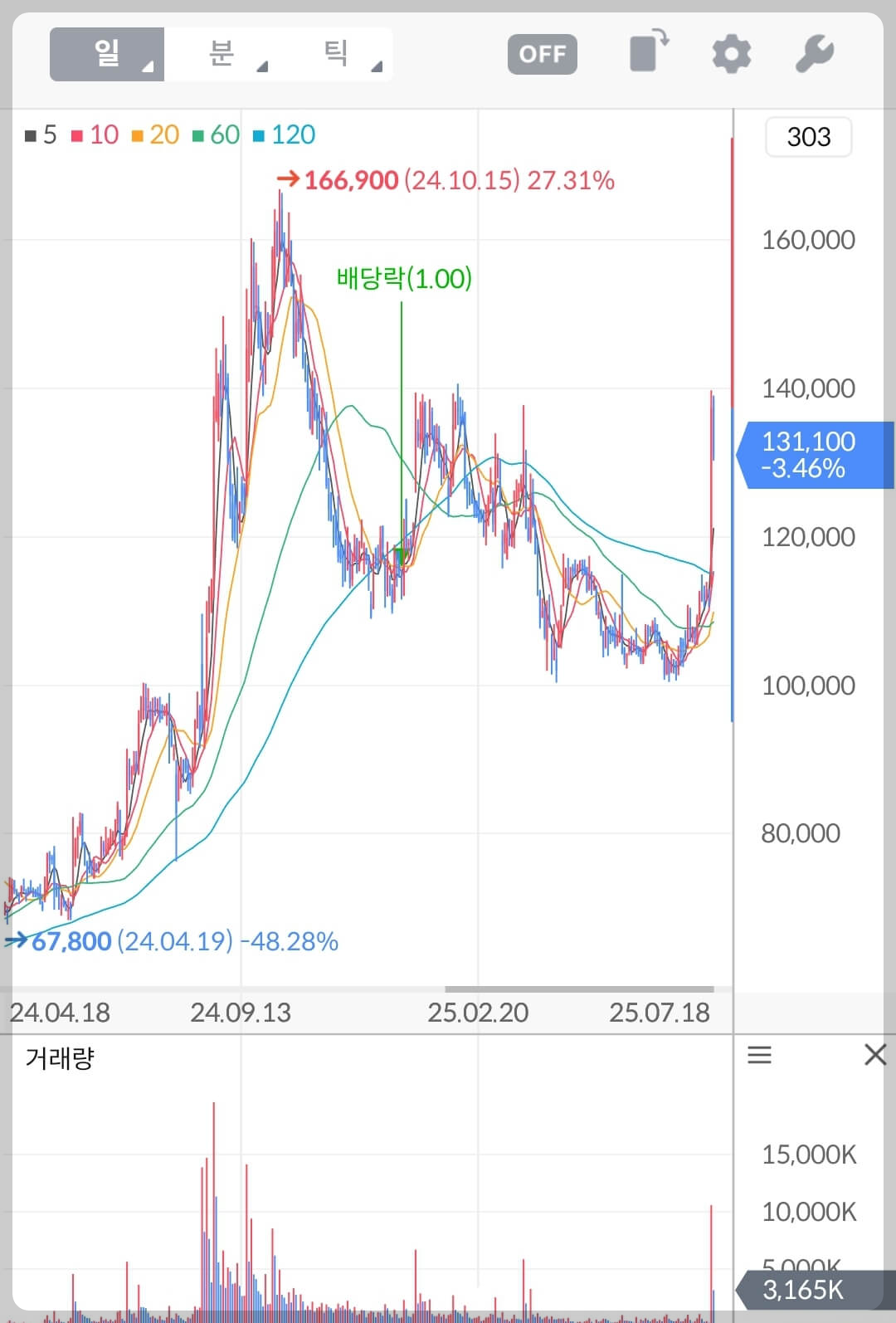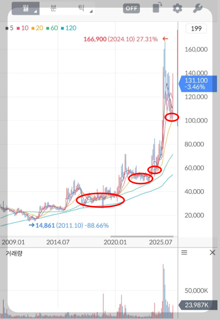 주가 5만원부터 모아가라고 말씀드렸던 주식이기에 굳이 목표가를 또 설정하고 싶지 않지만 평단가가 높아서 부담이 크신 분들을 위해 임시 목표가를 설정하였습니다. 우호적인 매크로에 연내 긍정적 모멘텀 1개만 나와줘도 전 고점을 넘어서는 파동이 나올 것으로 보이기에 목표가는 18만원으로 설정하였습니다.
