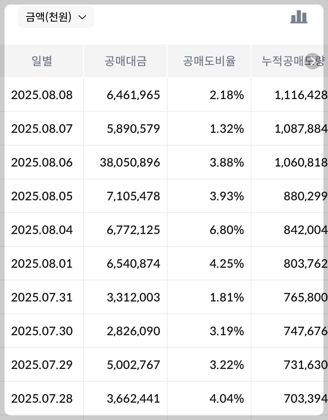 매크로만 좋다면 가격 상관없이 끝까지 매수하는 성향의 외국인 투자자들이 공격적으로 에이피알을 매수하고 있습니다. 현재 에이피알의 경영 및 시장 점유 현황을 보면 성장 초입에 있는 것이 확실해보이기에 외국인 투자자들도 공격적인 매수로 대응하고 있는 것으로 보입니다. 다만, 보수적인 기관 투자자들은 관망하는 추세이고 개인 투자자들은 수익을 실현하며 현금을 챙기는 모습이네요.